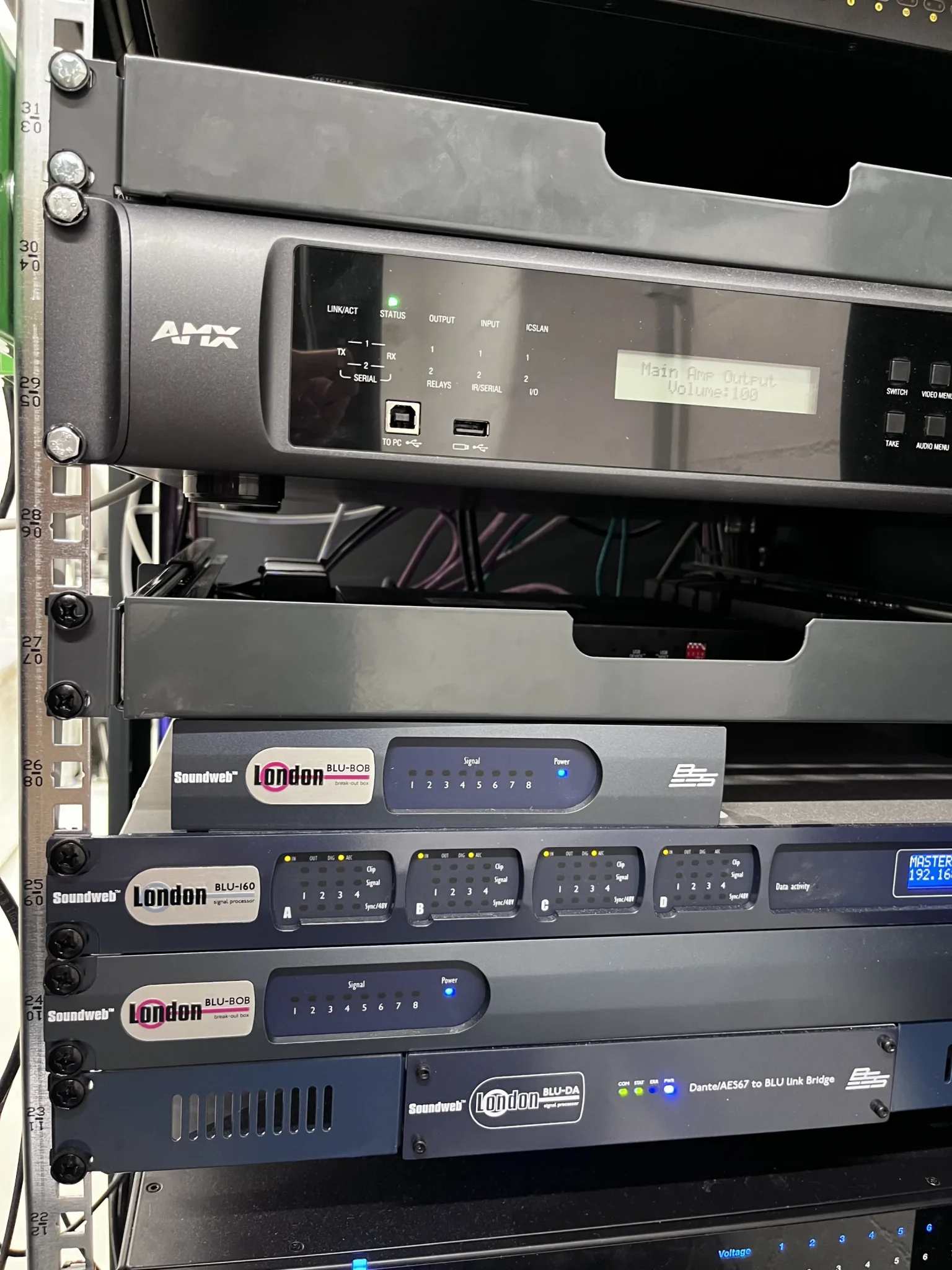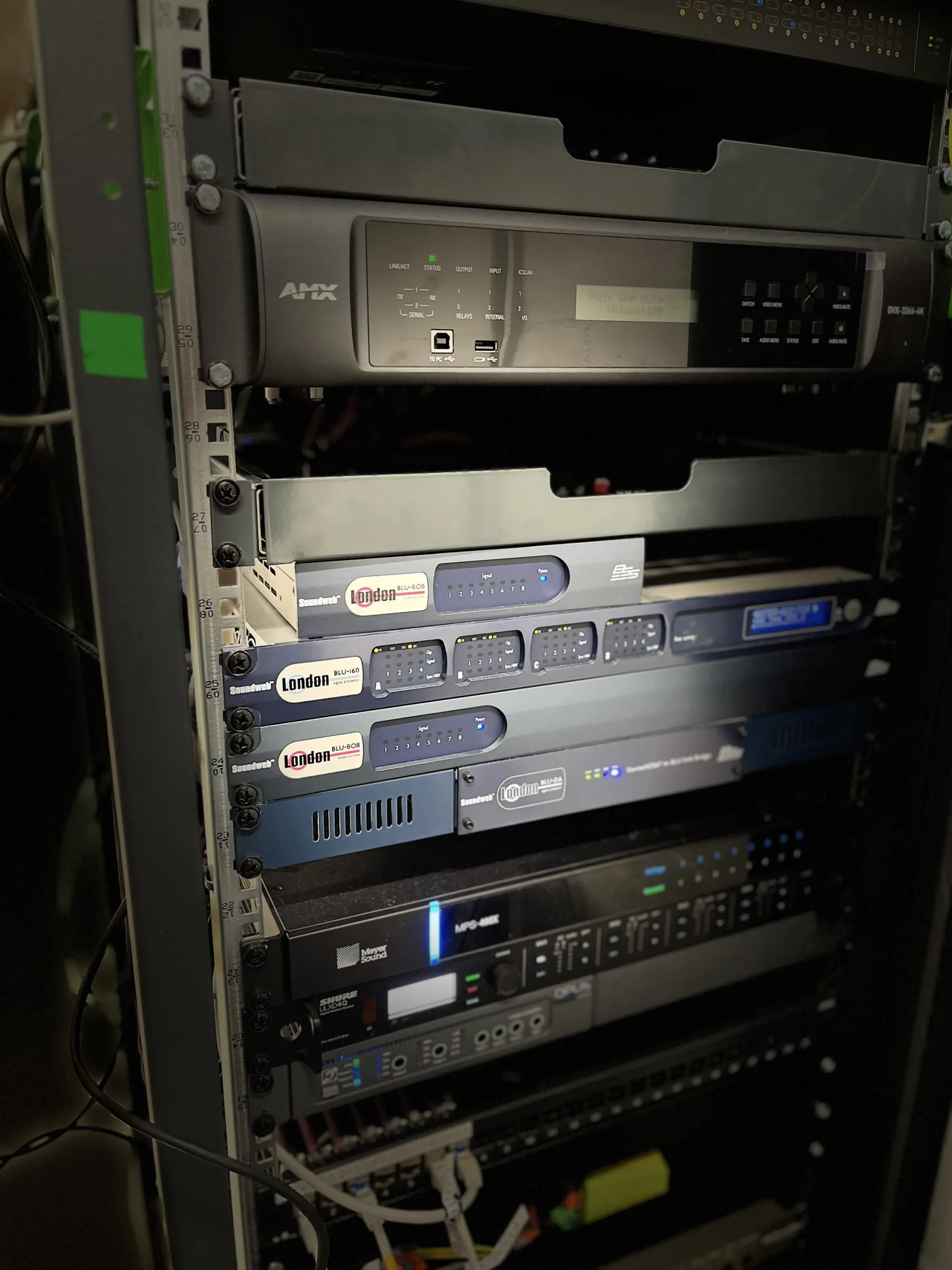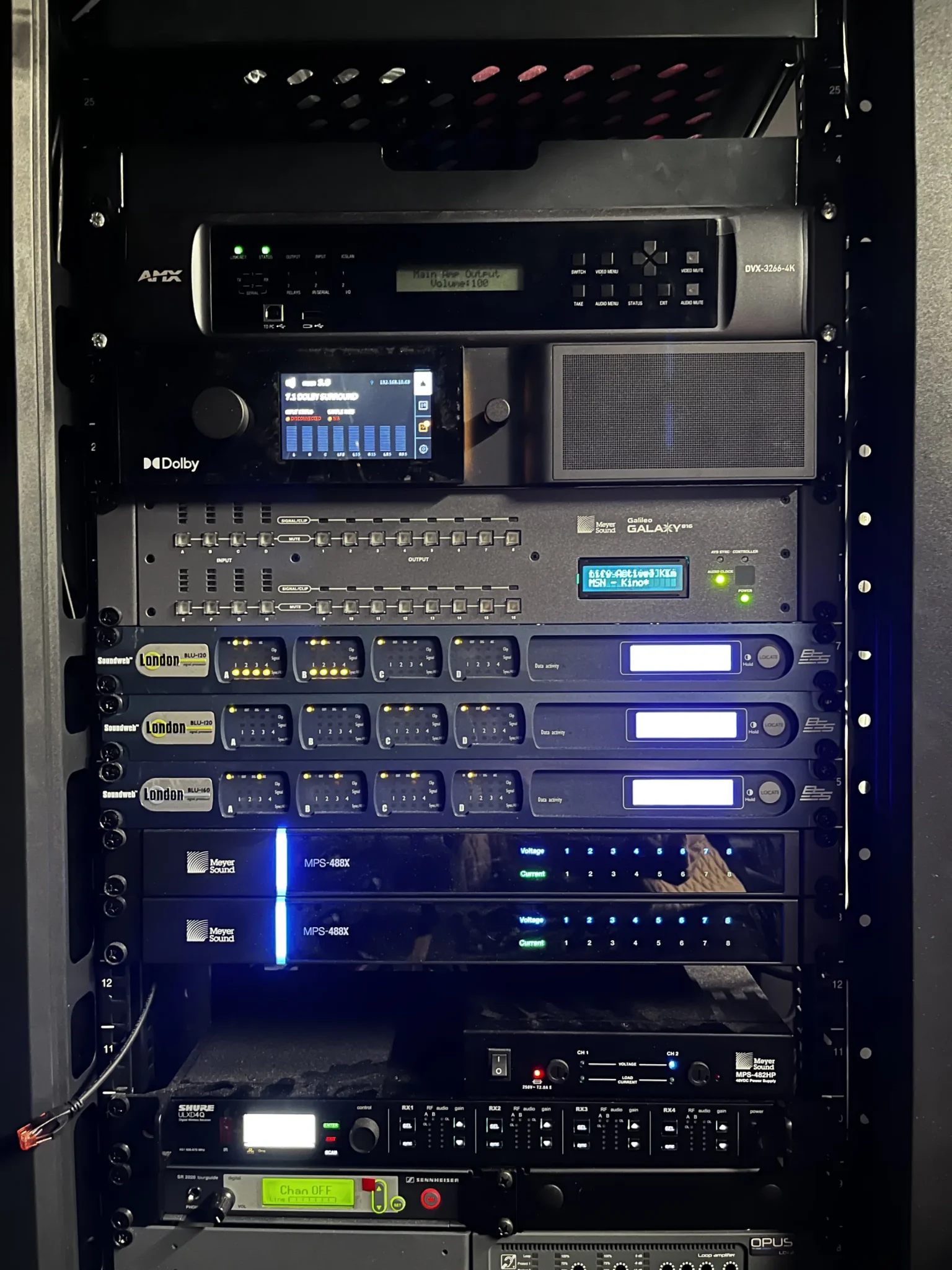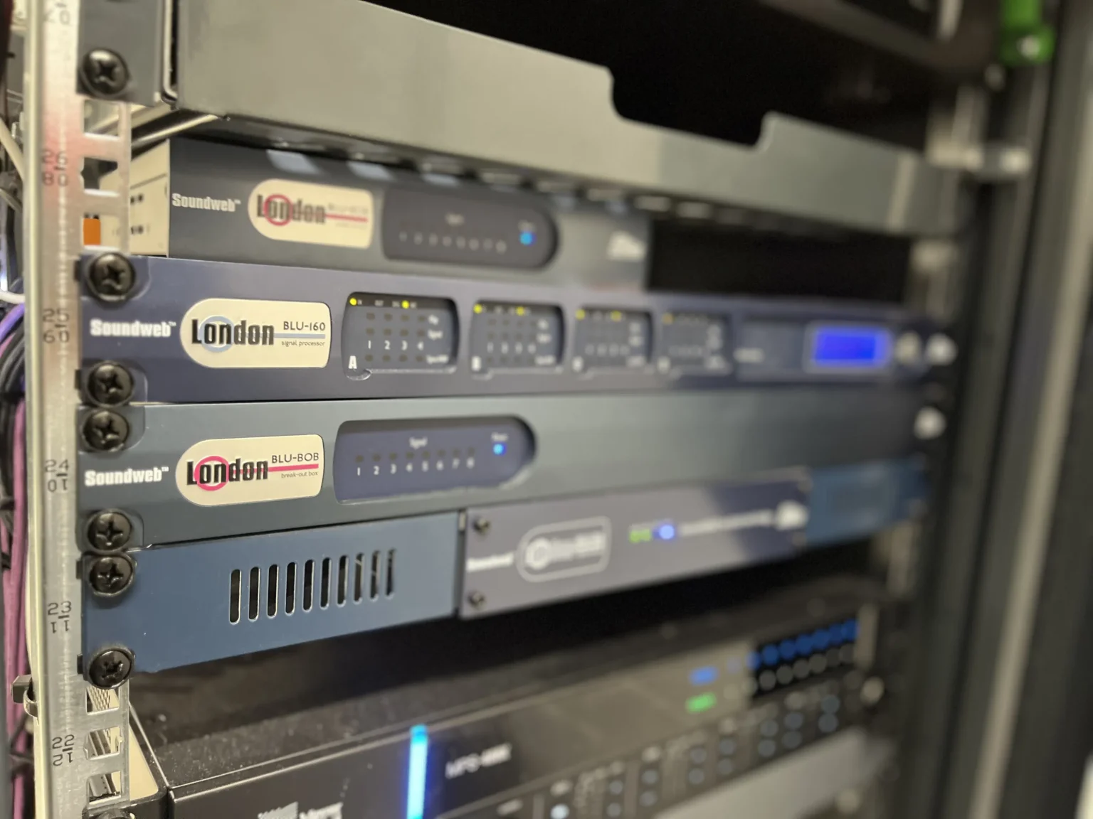 - Procesory sygnałowe: BSS BLU 100, BSS BLU 120, BSS BLU 160 – łącznie sześć jednostek.
