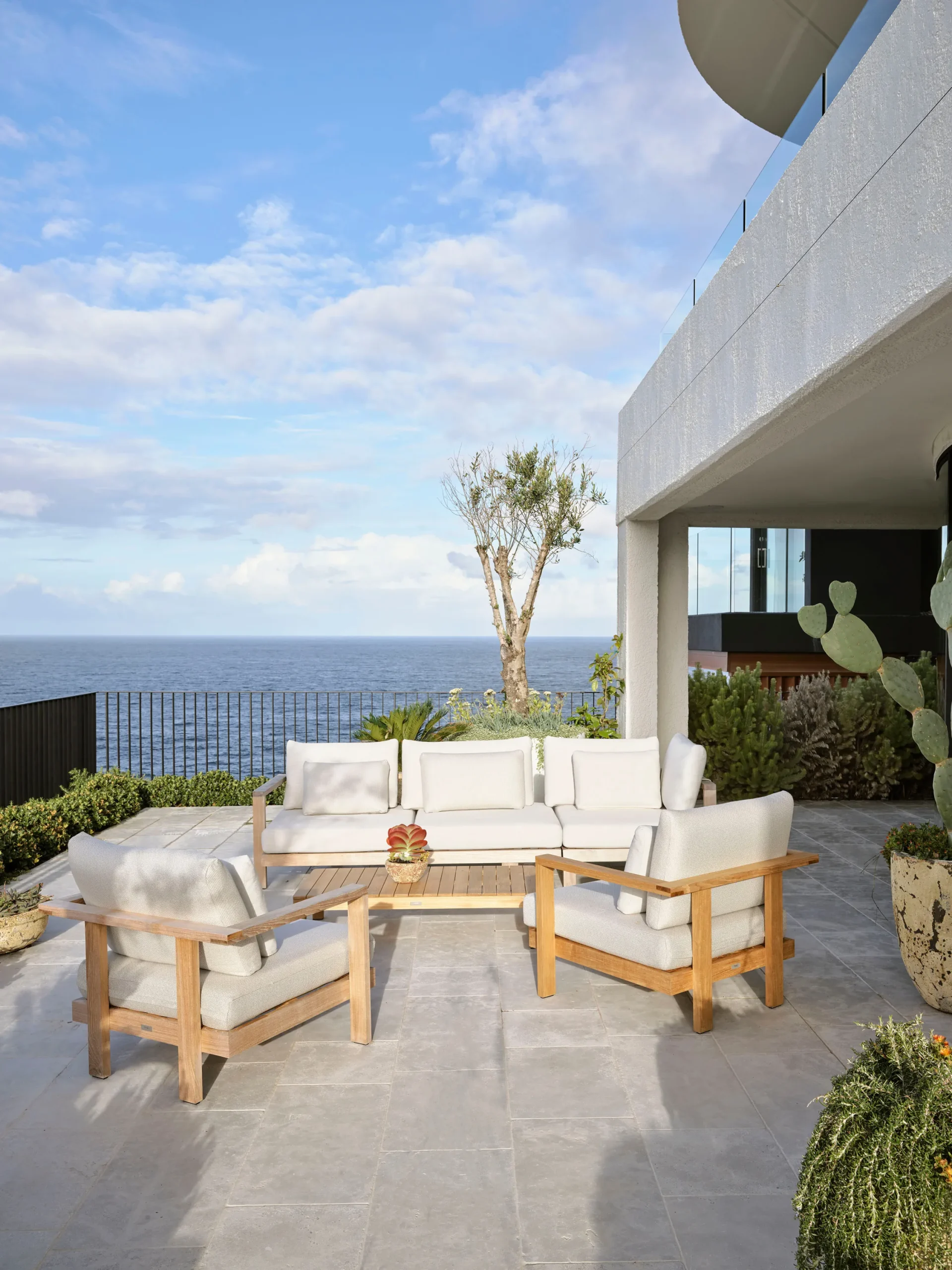 Projekt wyróżnia podział przestrzeni na dwie strefy: „stronę widokową” – idealną do kontemplacji oceanu, oraz „stronę funkcjonalną” – z kuchnią, ogrodem i basenem, stworzoną z myślą o zabawie dzieci i codziennych obowiązkach.
