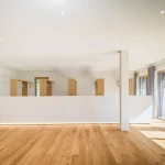 Nowe okna sięgające od podłogi do sufitu wykonano z dębu, pigmentowanego tak, by współgrał z podłogą z ogrzewaniem podłogowym. Na zewnątrz ramy anodowano na kolor brązu, który komponuje się z ceglanymi elewacjami. Elegancki i stonowany wystrój wnętrz osiągnięto dzięki zastosowaniu wysokiej jakości materiałów i spójnej kolorystyce.